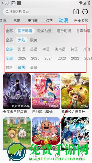 2、在动漫分类页面,选择要观看的动漫,进入动漫播放页面。