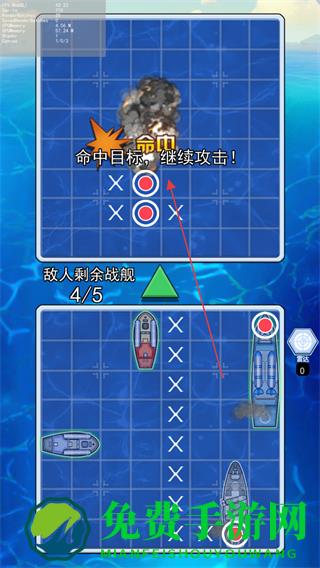 4、持续攻击敌方战舰的所有占格,击沉一艘后,继续攻击剩余战舰,直至击沉所有敌方战舰,获得胜利。