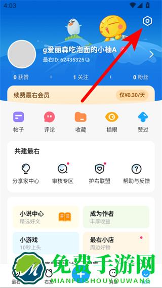 1、打开最右app,点击底部我的选项,在页面右上角,点击设置图标,进入设置界面。