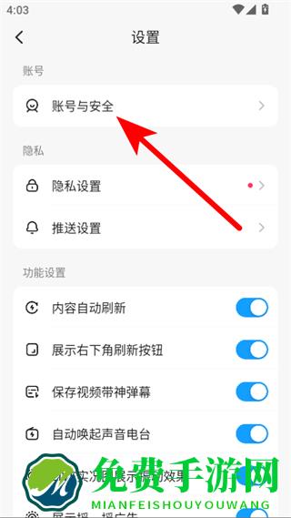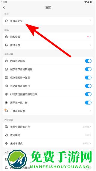 3、在设置界面中,点击账号与安全选项,进入账号与安全页面。