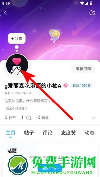 2、在个人页面点击昵称区域,进入个人主页后点击编辑资料。