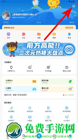 2、在个人页面右上角,点击设置图标,进入设置界面。