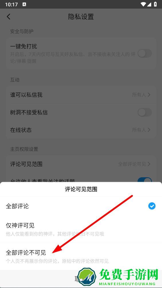 3、在隐私设置页面中,找到评论可见范围选项并点击。