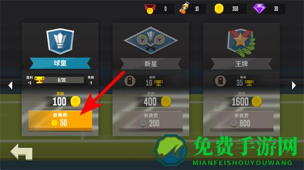2、选择球童段位,需支付50金币参赛费,获胜可获得100金币奖励。