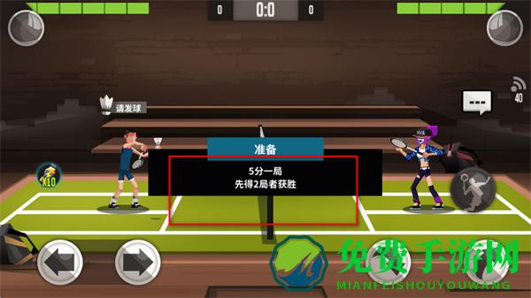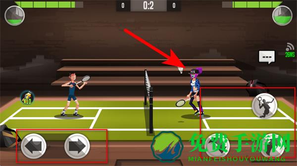 4、比赛中,可通过左下角左右箭头按钮控制角色前后移动,利用右下角击球按钮击球。