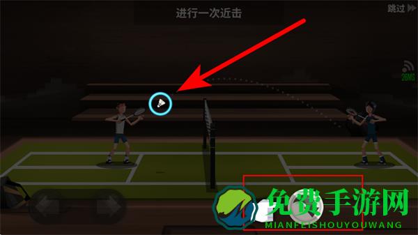 3、当羽毛球处于可击打范围时,点击相应的击球按钮如近击按钮,可进行击球操作,不同的击球按钮对应不同的击球方式。