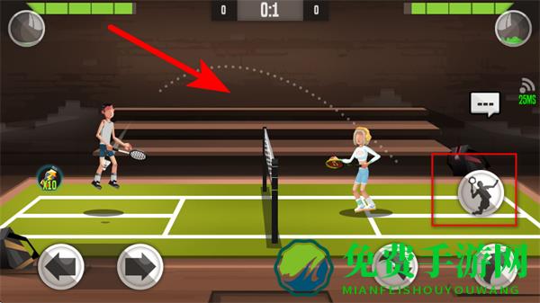2、在游戏中,可通过点击左下角的左右箭头按钮,控制角色进行前后移动,调整击球位置。
