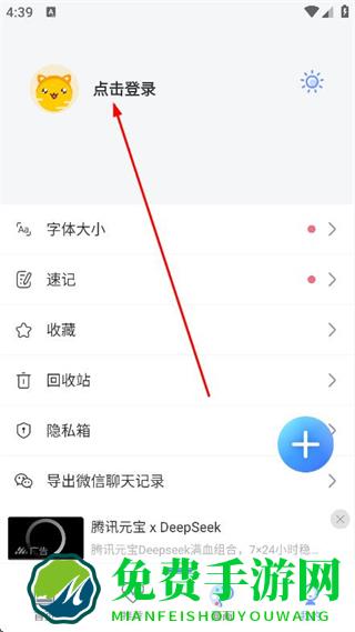 2、在我的页面,找到并点击上方的点击登录区域。