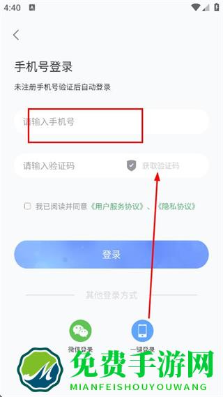 3、在手机号登录页面,输入手机号,点击获取验证码。