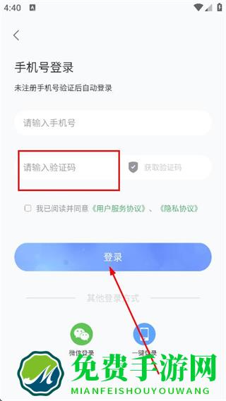 4、输入收到的验证码,点击登录,即可完成账号登录。