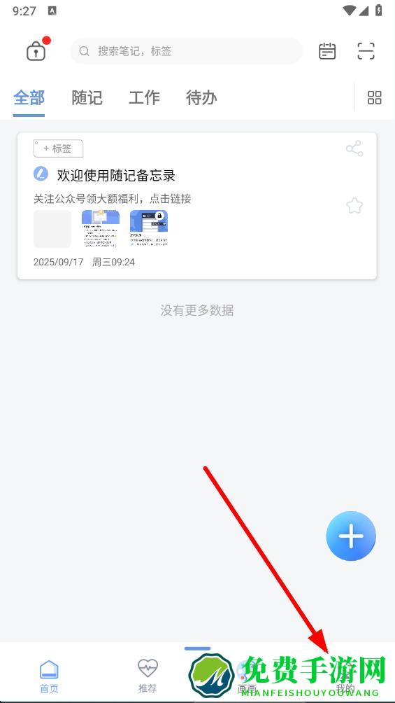 1、打开随记备忘录APP,点击底部导航栏我的选项。