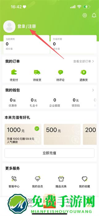 3、在我的页面,点击登录/注册,进入登录注册页面。