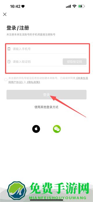 4、输入手机号,获取验证码并输入,点击登录,完成登录操作。