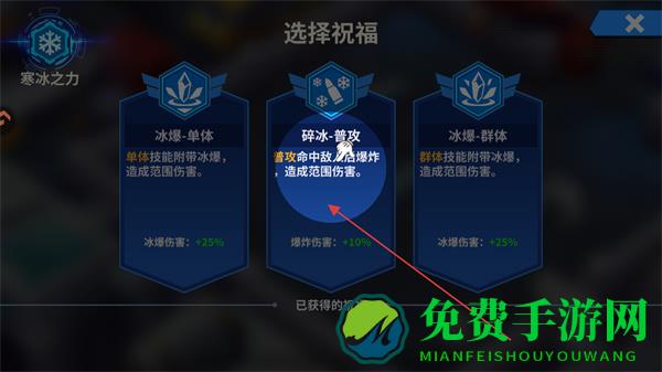 2、选择碎冰-普攻祝福,普攻命中敌人后爆炸,造成范围伤害。