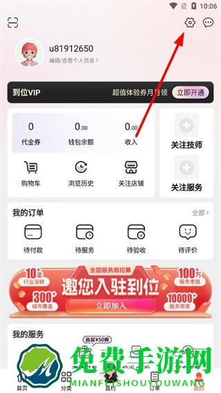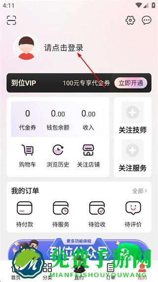 1、打开到位上门APP,点击界面右下角我的图标进入个人界面。