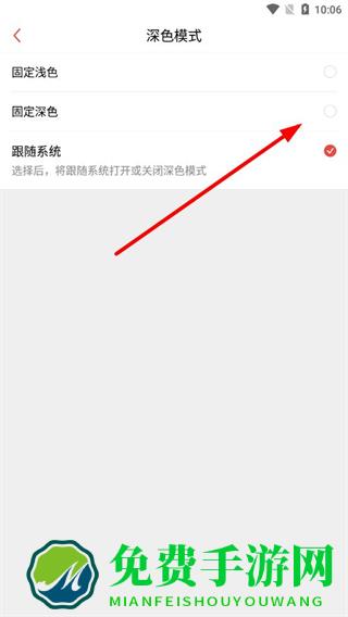 4、在深色模式页面,点击固定深色选项即可切换到深色模式。