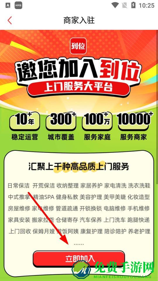 3、在商家入驻介绍页面,找到并点击立即加入的按钮。