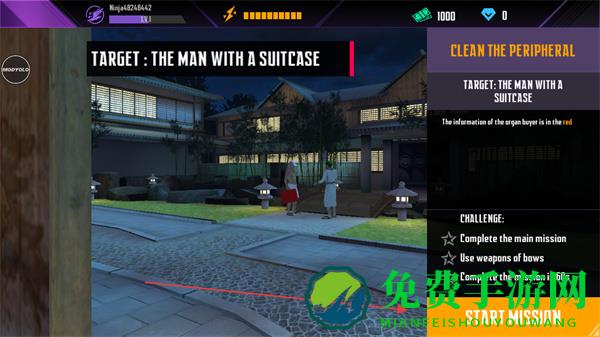 1、点击STARTMISSION开始任务,目标是消灭携带手提箱的人。