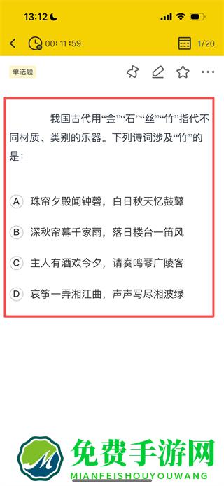 3、在答题页面,根据题目选择正确答案进行作答。