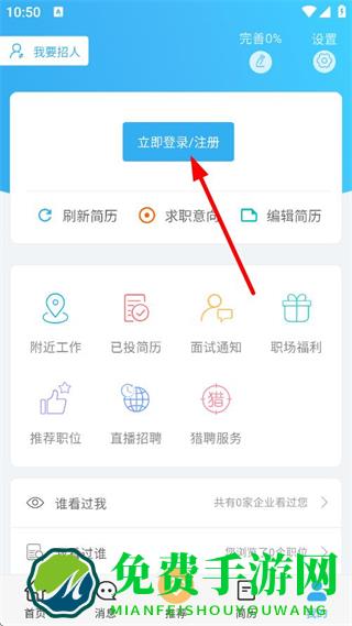 1、在求职APP首页,点击底部我的,进入个人页面。