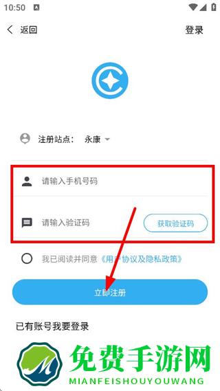 4、输入手机号码,获取验证码并输入,点击立即注册,完成注册操作。