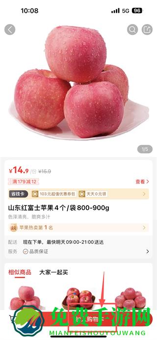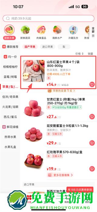 3、在苹果类商品列表里,选择山东红富士苹果条目,进入产品详情页。