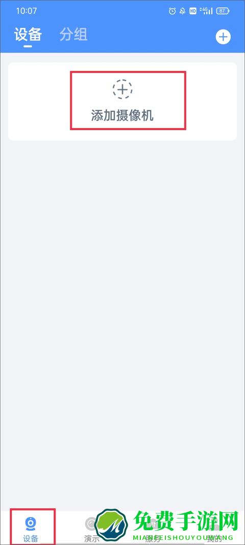 1、进入【设备】界面,点击上方唯一的按钮“添加摄像机”。