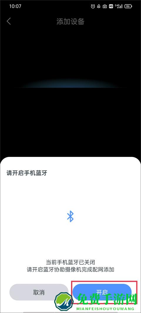 3、将手机上的蓝牙开启来协助摄像机完成配网添加,点击开始按钮。