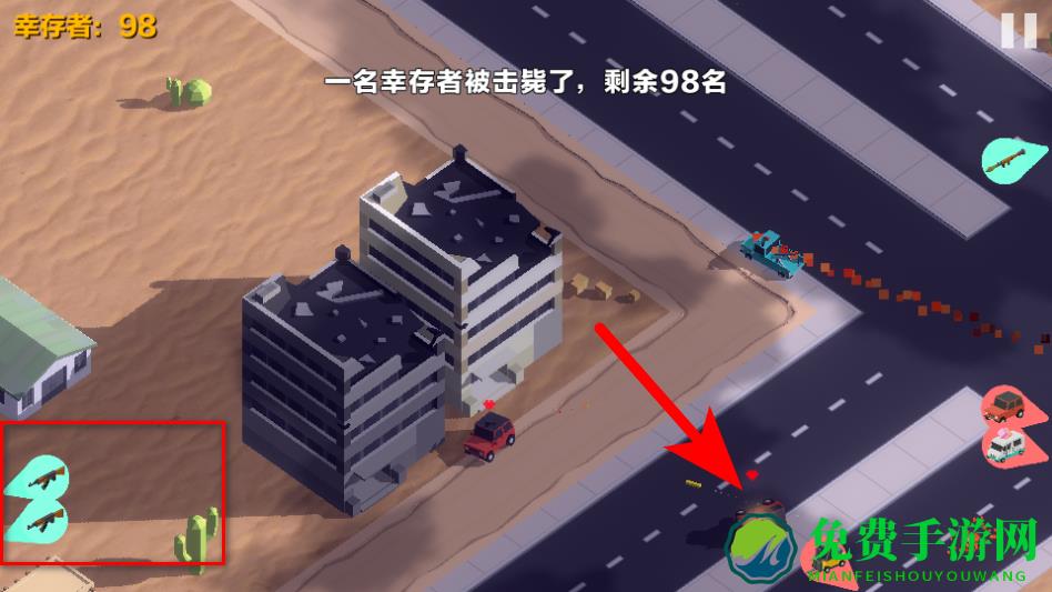3、拾取场景中的武器道具,增强汽车的攻击能力,更高效地淘汰其他幸存者。