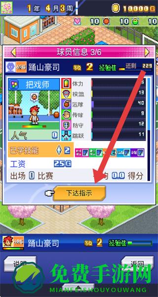 2、在球员信息界面,点击下达指示按钮,弹出操作菜单。