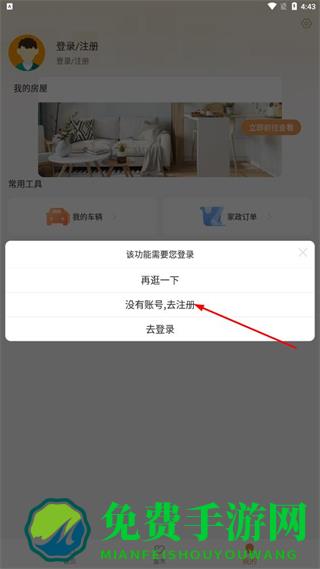3、在提示框中,点击没有账号,去注册,进入注册账号页面。