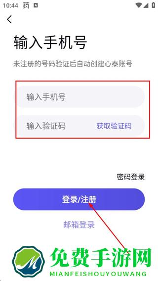 3、输入手机号,获取并输入验证码,点击登录/注册,完成注册操作。
