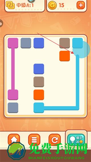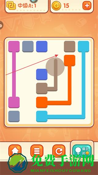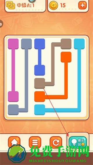 4、若遇困难,点击提示按钮,消耗金币获取连线提示,助力通关。