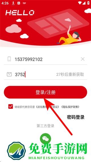 4、点击登录/注册按钮,即可完成登录若为新用户,此操作同时完成注册。