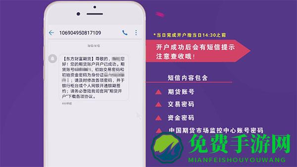 开户成功后会受到短信提示,内容包含您的期货账号、交易密码、资金密码和中国期货市场监控中心的账号密码