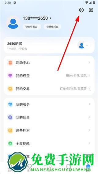 1、打开海尔智家APP,在我的页面,点击右上角设置图标。
