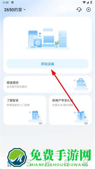 1、在海尔智家app智家页面点击添加设备选项,进入添加设备页面。