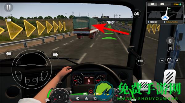4、驾驶卡车完成运输任务,在行驶过程中可根据路况调整车速和方向,顺利抵达目的地。