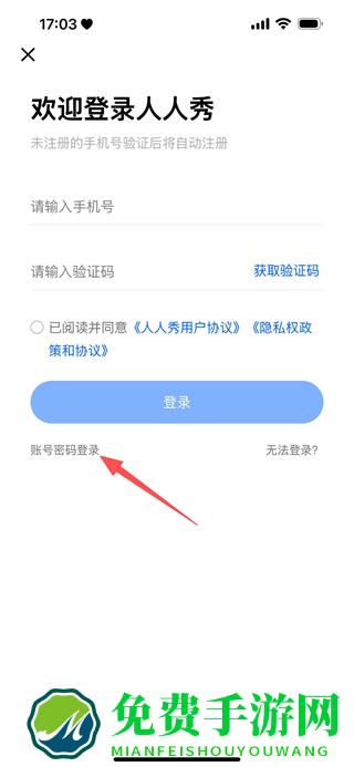 3、在登录选择页面,点击账号密码登录,进入账号登录页面。