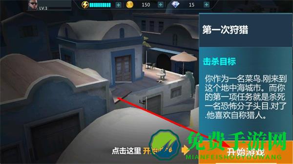 1、点击开始游戏按钮进入任务,根据任务提示了解目标信息,选择合适的狙击位置,确保任务顺利进行。