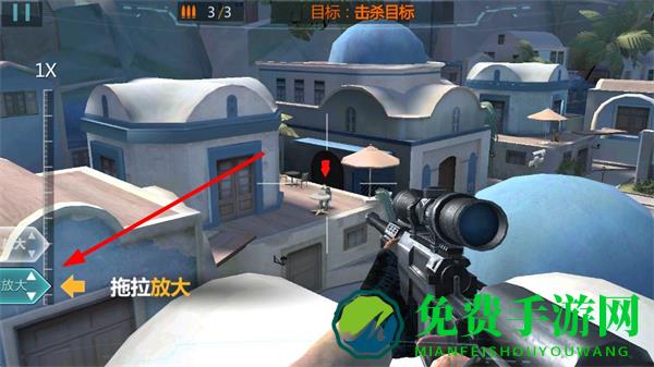 2、拖曳屏幕调整狙击枪瞄准方向,寻找目标所在位置,瞄准过程中需保持耐心,仔细观察场景细节。