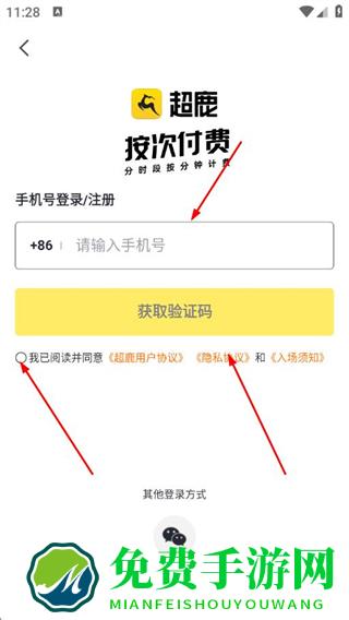 3、勾选我已阅读并同意超鹿用户协议、隐私协议和入场须知。