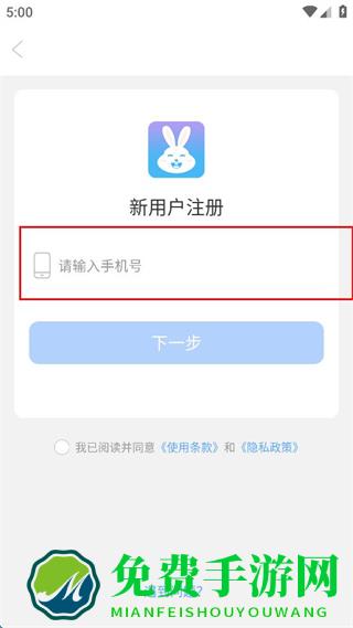 2、在新用户注册界面的请输入手机号栏输入手机号。