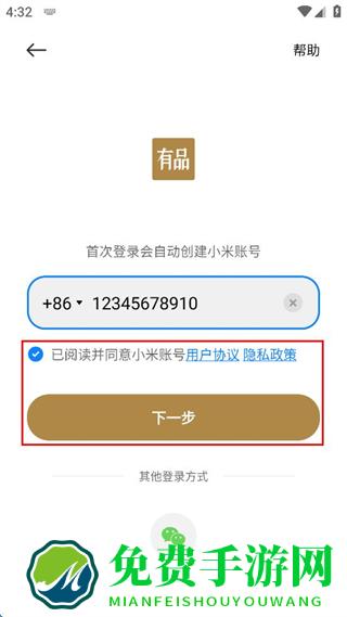 4、勾选已阅读并同意小米账号用户协议隐私政策,点击下一步按钮。