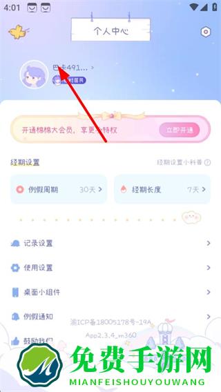 1、在棉棉月历首页,点击左上角账号区域,进入个人中心页面。