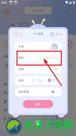 3、在个人信息编辑页面,点击昵称,即可修改昵称。