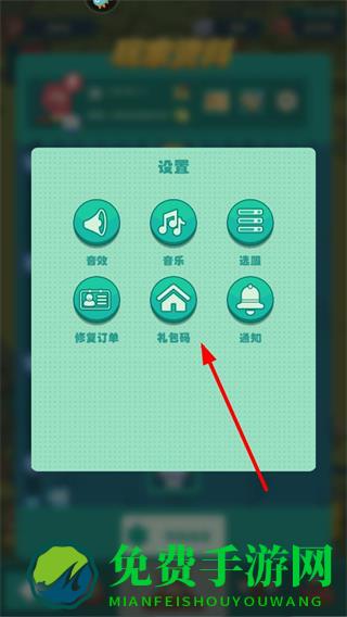 3、在设置界面中,点击礼包码选项,弹出礼包码输入框,准备输入礼包码。