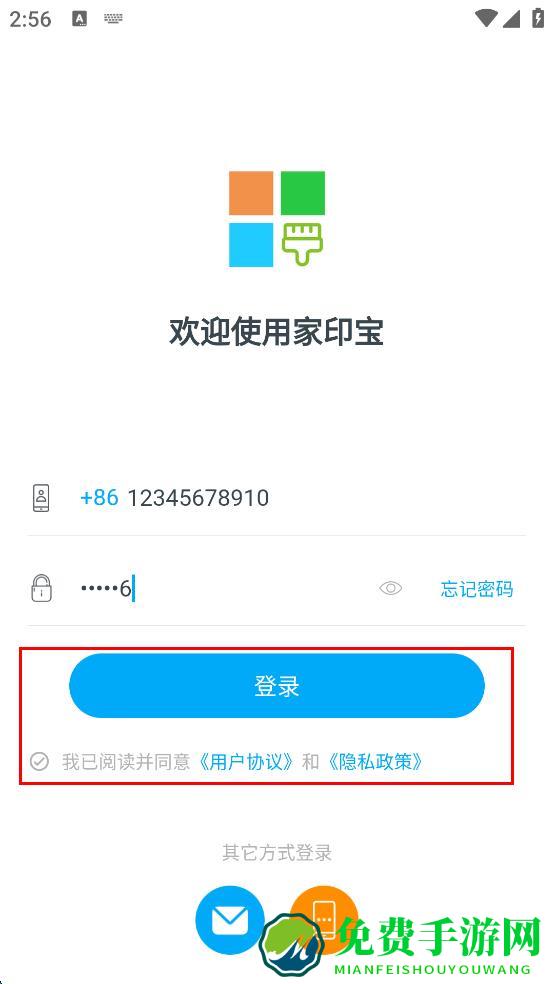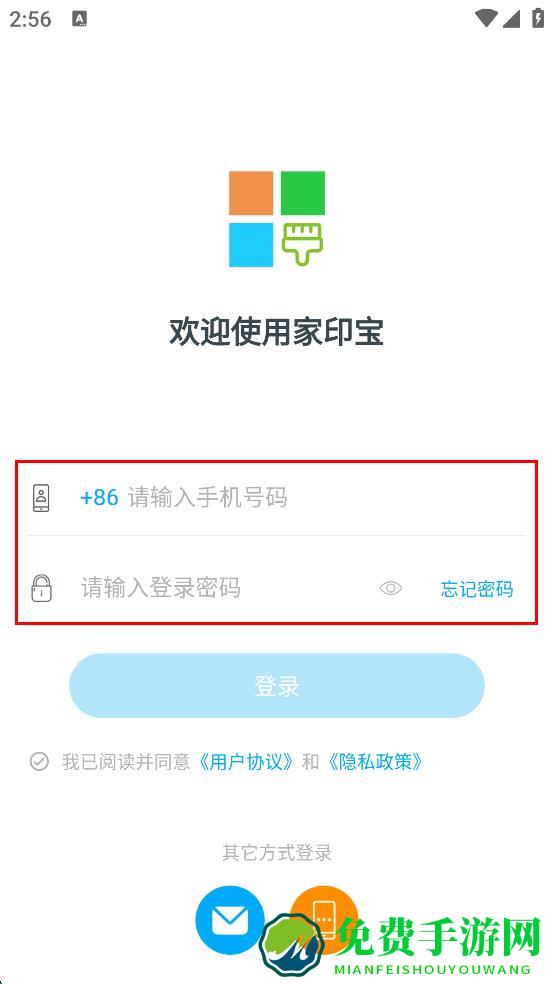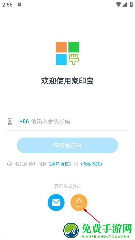 1、打开家印宝APP,在登录页面点击密码登录选项。