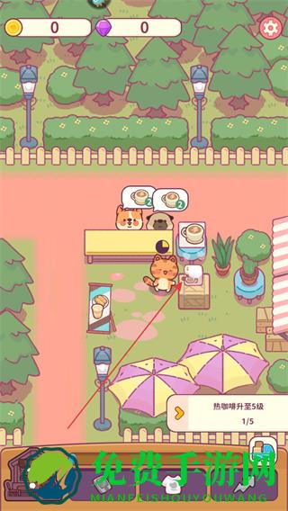 猫咪角色、可爱的动物顾客与温馨的餐厅场景,搭配轻快的背景音乐,整体风格治愈解压,适合休闲玩家放松身心。