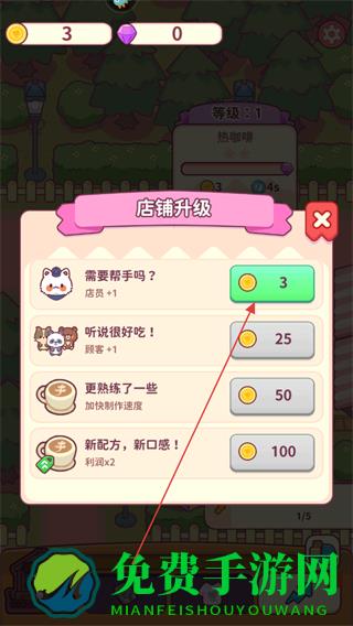 4、积累金币后,进行店铺升级如消耗3个金币增加店员,提升店铺运营效率,吸引更多顾客。